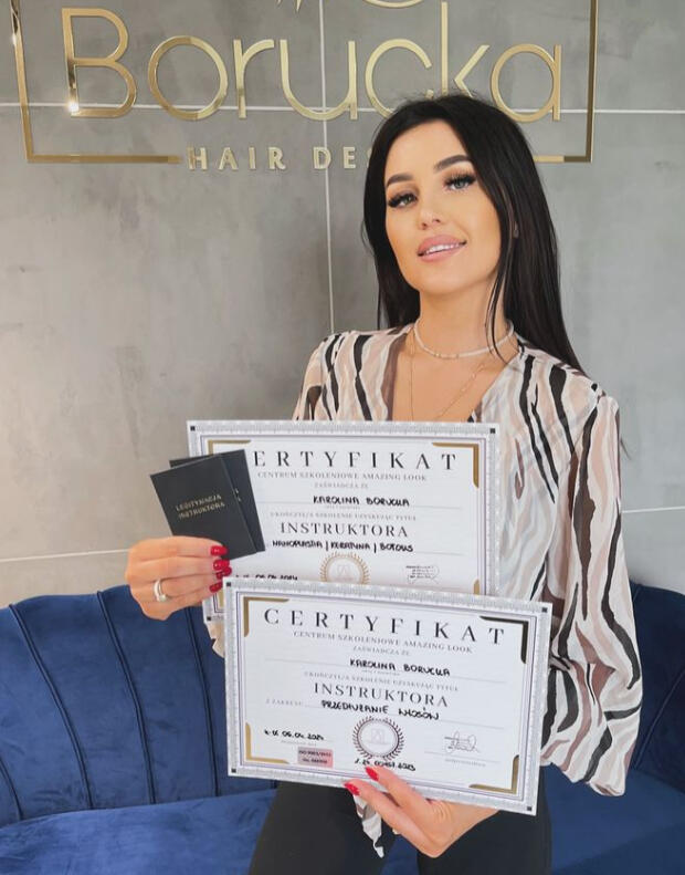 Cześć wszystkim ✋🏼 Mam na imię Karolina i jestem właścicielką firmy BORUCKA HAIR DESIGN Salon prowadzę już 6lat Kreatywność oraz zdolność do zrozumienia indywidualnych potrzeb klienta to mój klucz do sukcesu , a w zawodzie jestem już 14lat nawet nie wiem jak szybko to zleciało 🙀. W pracy poświęcam się w 100% przez te lata praca dużo mnie nauczyła . Wiem , że praca z ludźmi nie jest łatwa i nie zawsze jest tak kolorowo jak by się chciało. Na szczęście trafiam na zdecydowanych klientów , którzy wiedzą czego chcą 😉 🙏🏻 W moim zespole pracuje fajna sympatyczna dziewczyna Ola @aleksandraolasik która jest u mnie już 4 lata , większość klientów już ją zna 😀zawsze pomoże , doradzi mogę na nią liczyć . Zatrudniam także 3 praktykantki i przyjmuje do nauki zawodu✂️. Cały czas staramy sie rozwijać nasze kwalifikacje i być na bieżąco z trendami. Tak pokrótce przedstawiłam wam moj team 🙂 Zapraszam do śledzenia nas tutaj i Facebooku 😘